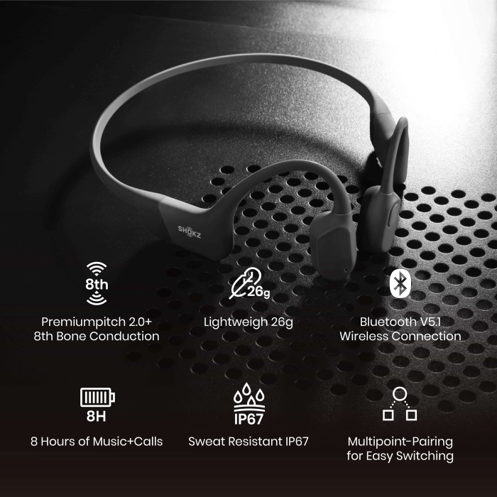 Een van de meest opvallende eigenschappen van de Shokz OpenRun USB-C Hoofdtelefoon is het open-ear ontwerp. Dit betekent dat de hoofdtelefoon niet direct in je oor wordt geplaatst, maar op zachte pads voor je oren rust. Hierdoor kun je tegelijkertijd genieten van je muziek en je bewust blijven van omgevingsgeluiden. Dit zorgt voor een veilige luisterervaring, vooral tijdens het sporten of buitenshuis.